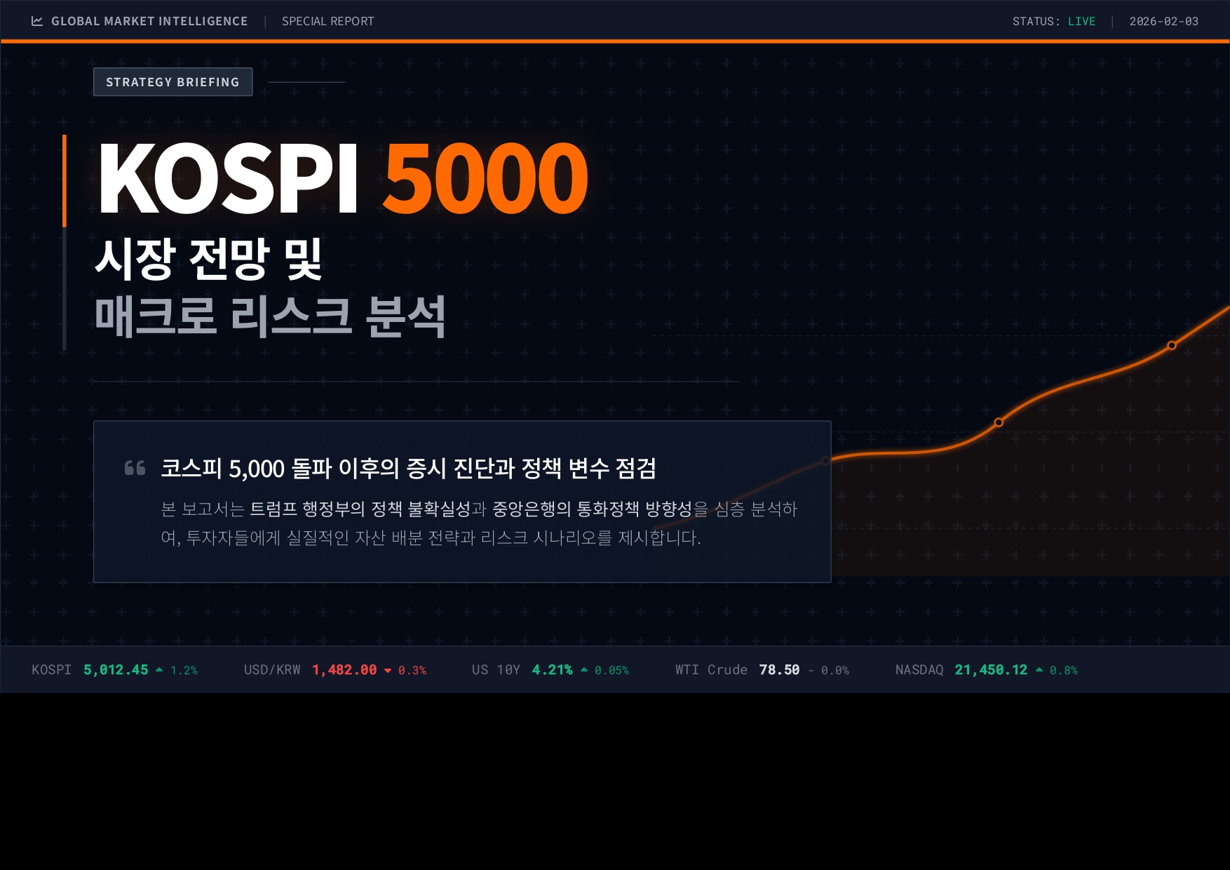 본 보고서는 코스피 5,000 포인트 돌파 이후의 국내외 경제 상황을 진단하고, 트럼프 행정부의 정책 불확실성과 중앙은행의 통화 정책 방향성을 분석한다. 핵심 요약은 다음과 같다.