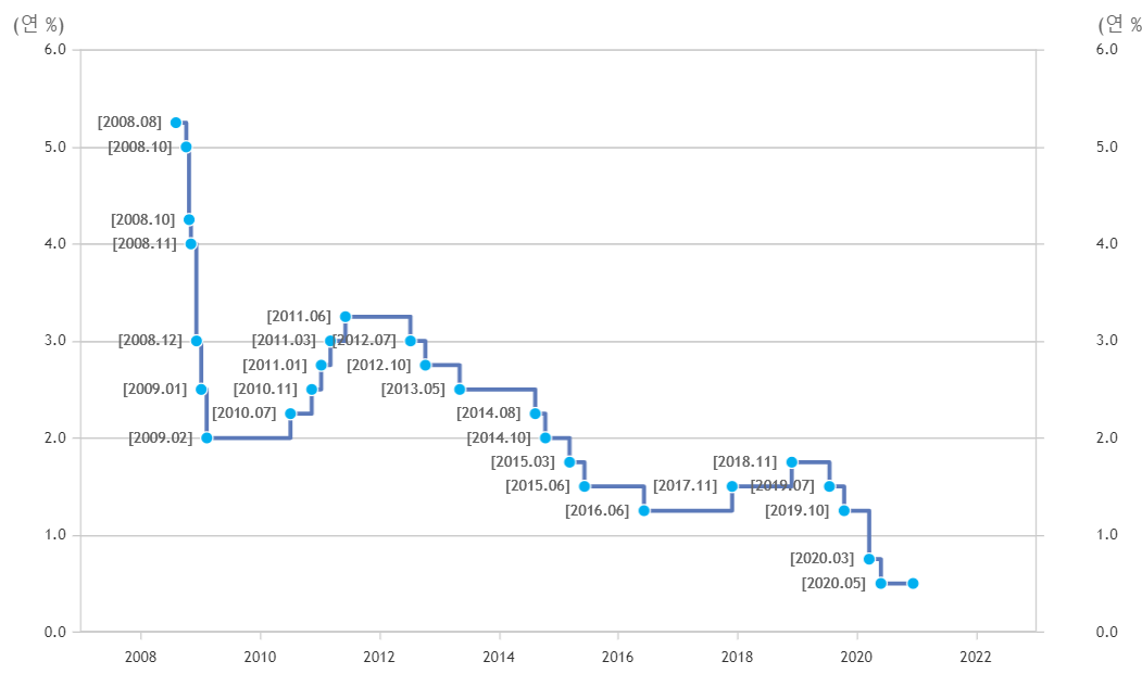 금리는 2008년 이후 계속 내려가고 있습니다.