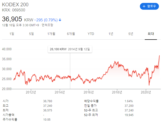 한국코스피를 대표하는 KODEX200을 살펴볼까요?