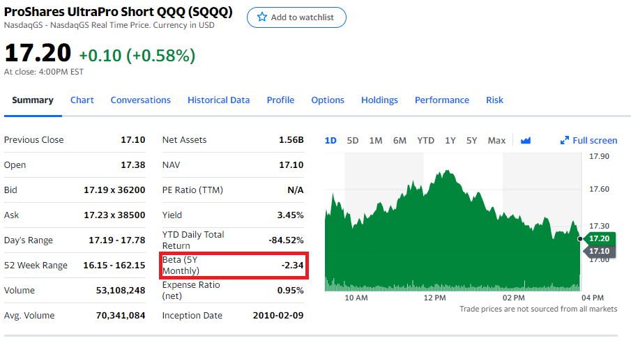 SQQQ는 시장이 1% 오르면 -2.34% 오르네요.(하락한다면 수익)