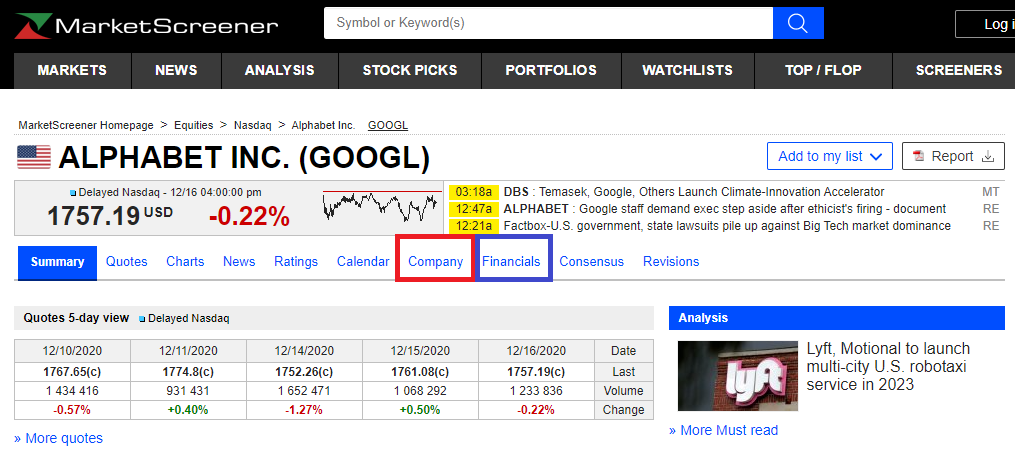우리는 이곳에서 Company 와 Financials를 주로 확인해 볼 겁니다.